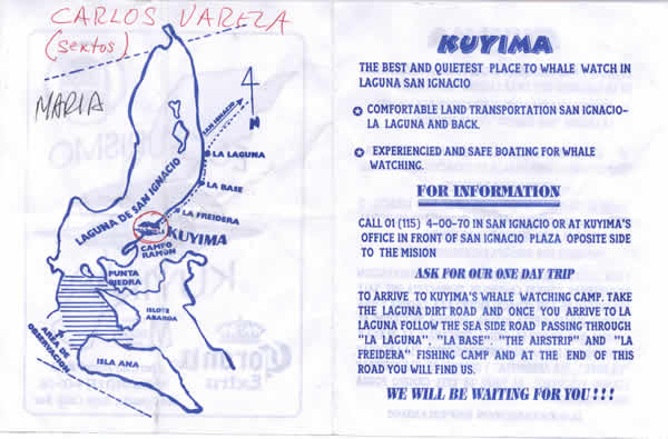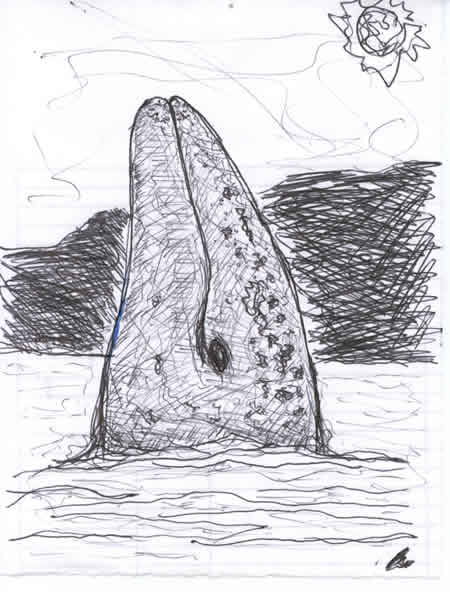 We met so many interesting and nice people at Laguna San Ignacio, people who came from all over the world to see the whales. Hilda and Tonio, both telecommunications engineers, came from Mexico City for their vacation. We met a couple from Spain, and a family from Mexico City. We particularly enjoyed talking to the kids, Rodrigo and Valeria, whose English and manners were impeccable. We met people from as far away as Austria, all coming to see the gray whales. The locals are pretty cool, too. We spent some time chatting with Teresa, Carlos' American wife. Teresa gave us an ink drawing she made of a whale as a goodbye present.