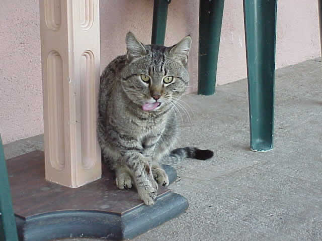 We headed out in search of food after our cold showers, and ate lunch near the pier at Guillermos. We feasted on seafood, and then strolled around a bit. Back at the hotel, we made friends with a resident kitty and fed it sardines, which it gulped down gratefully.