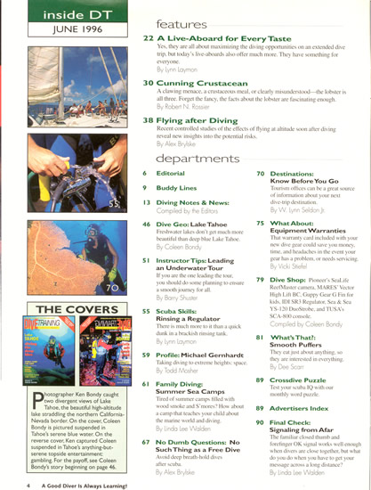 Diving - the Rewards are Peerless", with Coleen Bondy, Dive